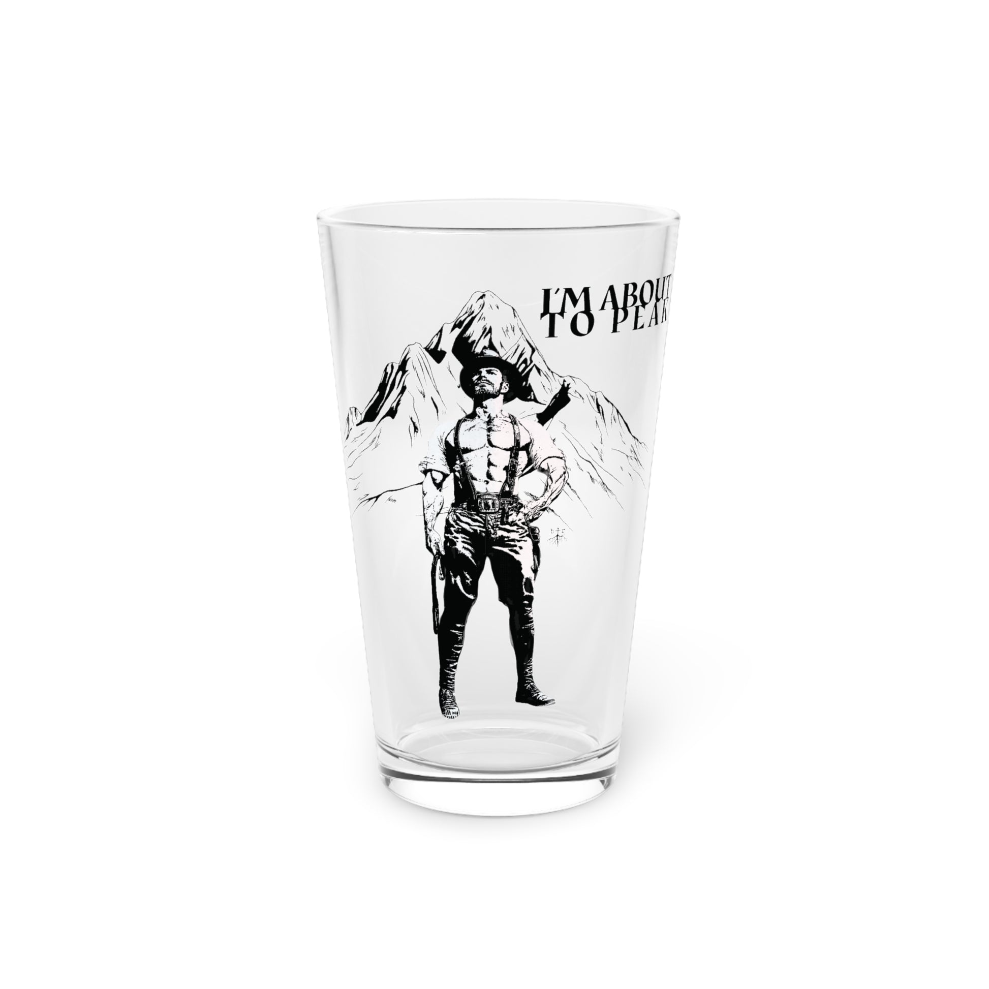 Lederhosen Bear Pint Glass, 16oz - I'm About To Peak